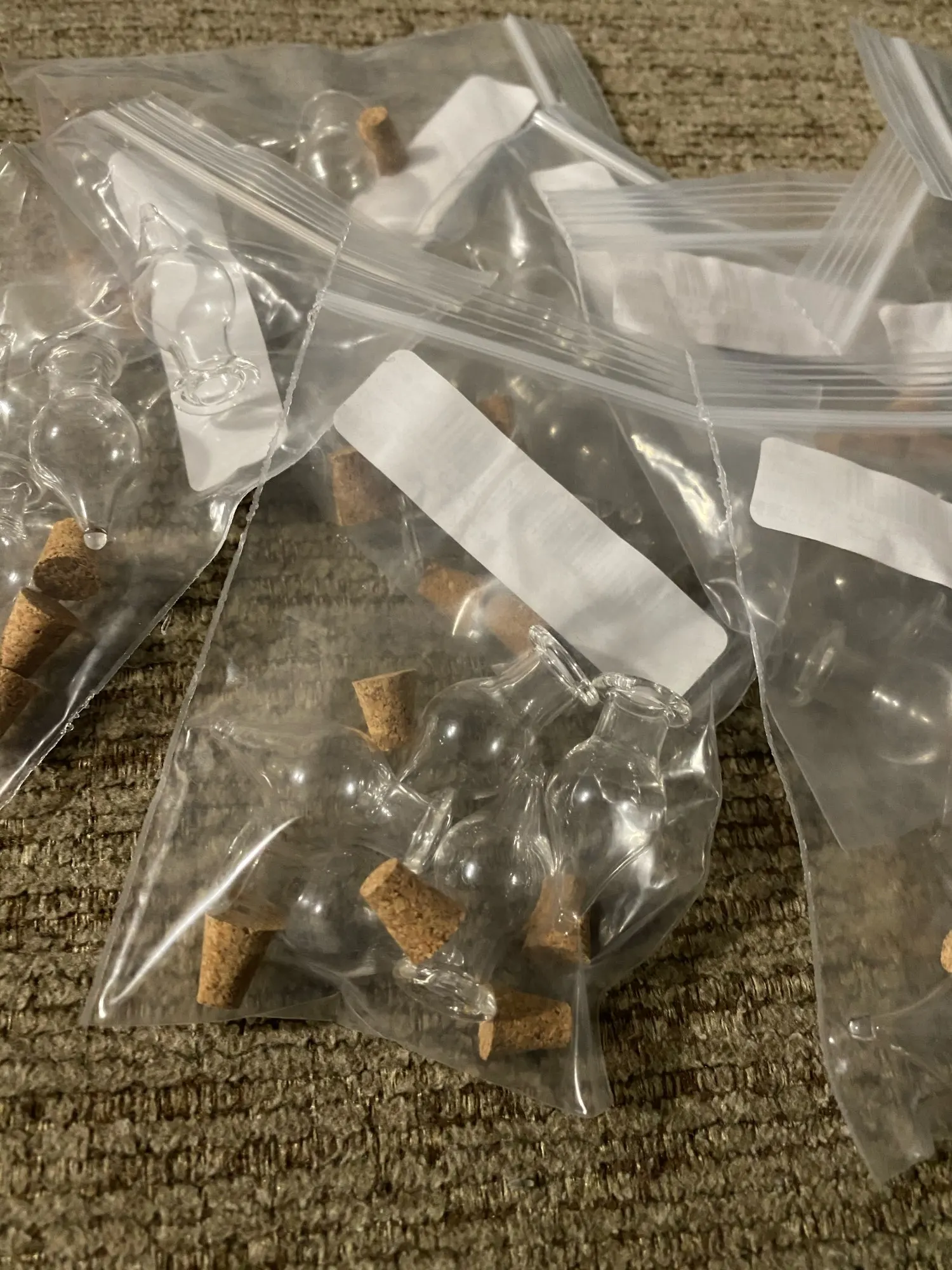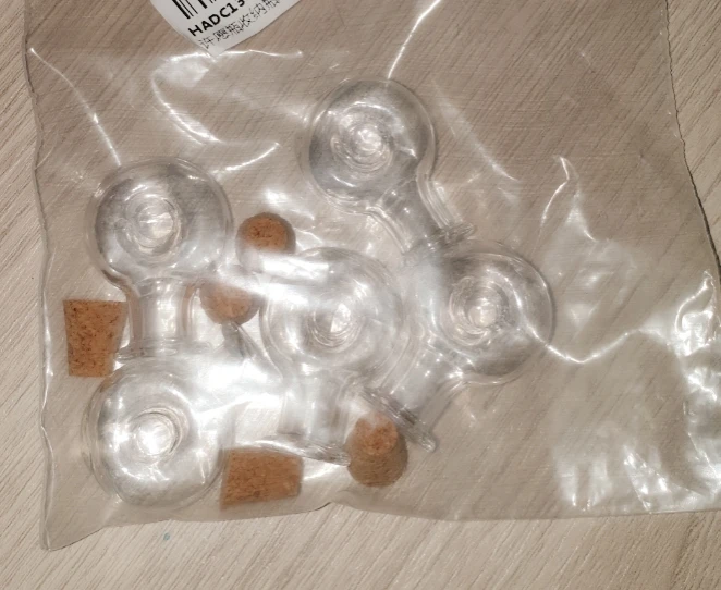 Я был очень приятно удивлен, когда он пришел. Маленькие бутылки, они выглядят восхитительно. Кроме того, каждый из них действительно поставляется с пробкой. Не могу дождаться их использования!