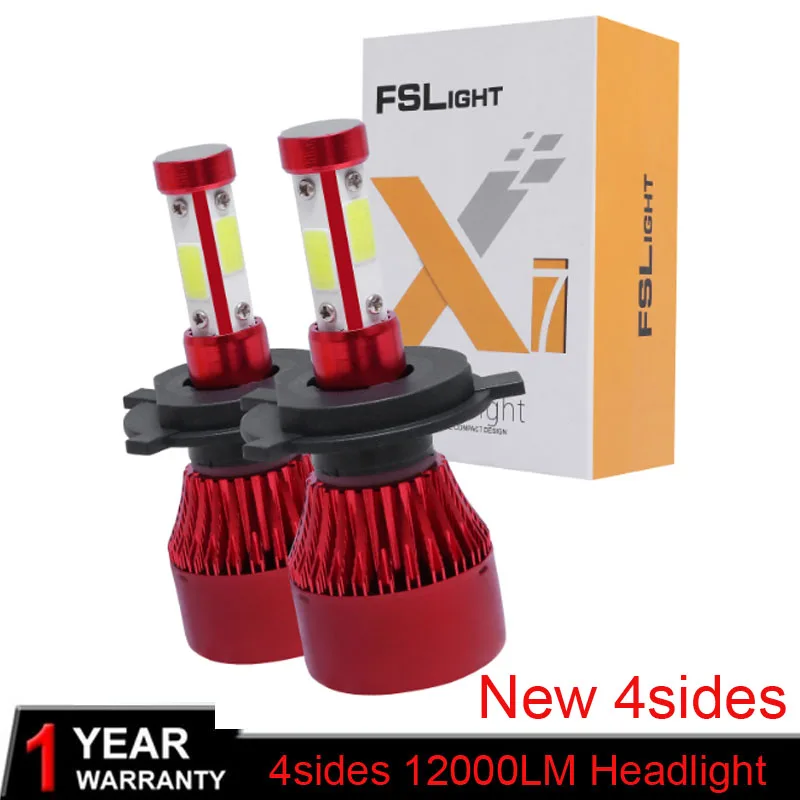 Новые фары лампы X7 80 WSet дальнего и ближнего света 4-сторонние светодиодные противотуманные фары H4 H7 H8 H9 H11 9005 HB3 HB4 9006 9012 12000LMкомплект 6000K COB