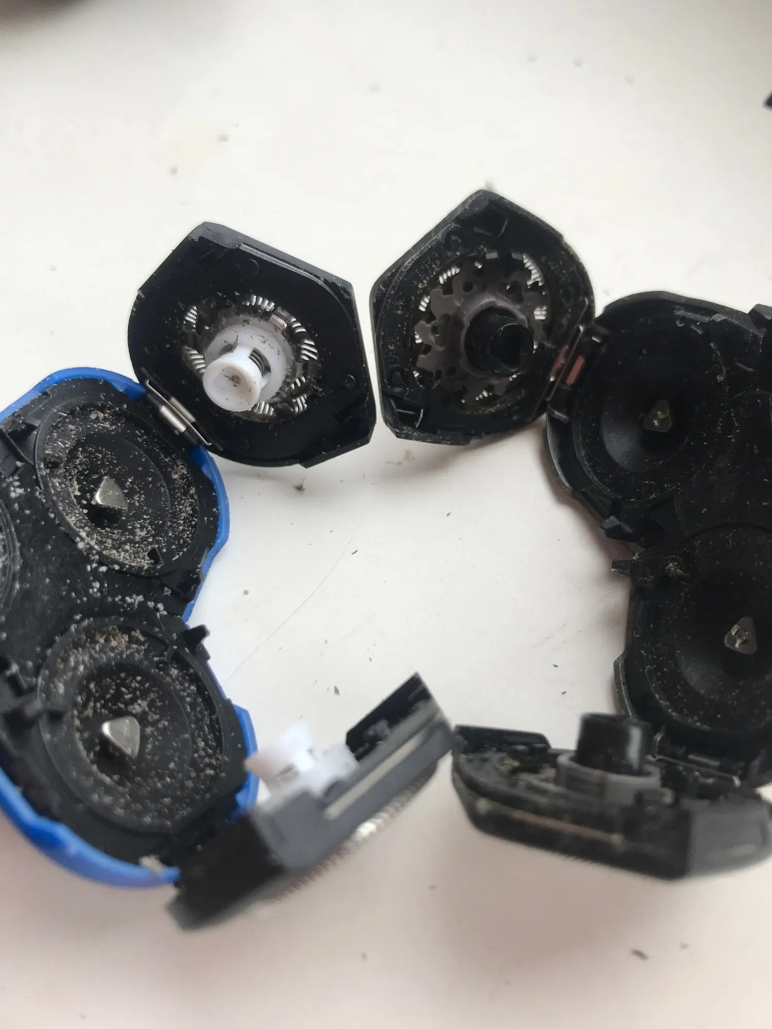 Старая оригинальная головка которой уже 6 лет бреет лучше чем эта срань!!!! Если провести аналогию это все равно что бриться джилетом и тяпкой!!! Головку в бритву втыкать приходиться с непомерной силой под страхом сломать бритву на фото синяя китайское говно и две старые головки оригиналы