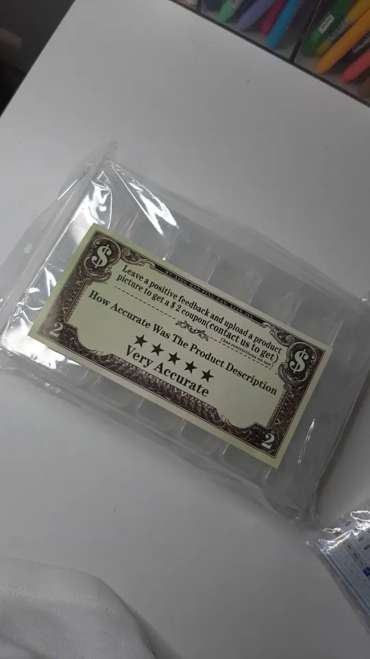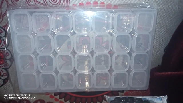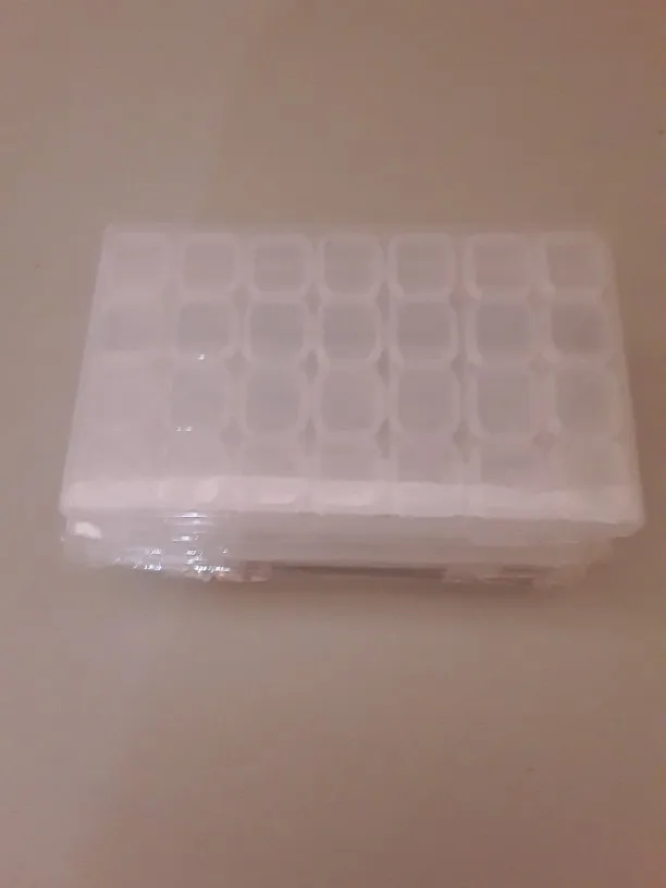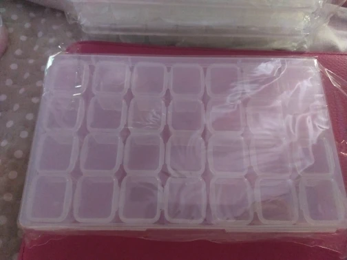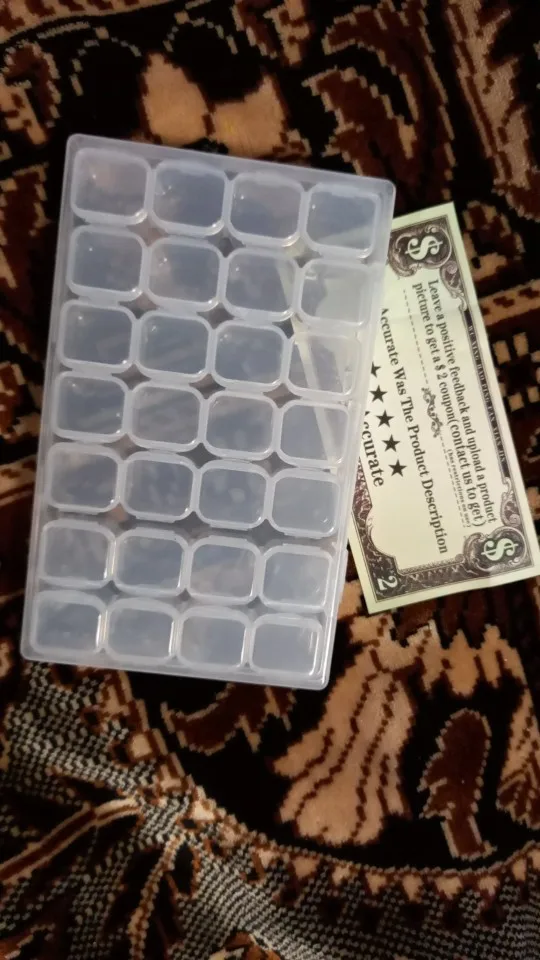 Немного маленький. Но он соответствует описанию. Наружный Замок Коробки сломался, но он все еще служит мне, чтобы держать бусины, потому что каждый отсек имеет свою собственную крышку.