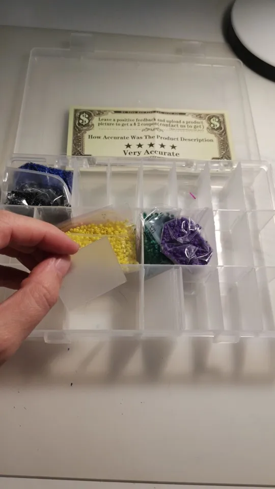 Коробка немного меньше, чем я ожидала, но она все еще была настолько же полезна для использования, которое я хотел вам дать. Я так доволен полученным продуктом, что Перезаказал больше, чтобы закончить заказ этого вида бусин.