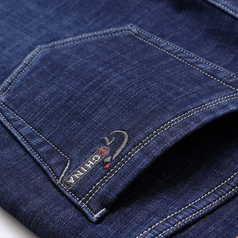 Джинсы мужские с высокой талией, теплые толстые Стрейчевые штаны из хлопка, брюки большого размера на флисе, прямые джинсы из денима посадка, зима