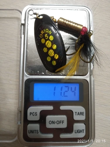 Доставка очень долгая. Блесна на 4(5). Фактический вес 3.1гр. Вращение не проверял, но думаю проблем нет.