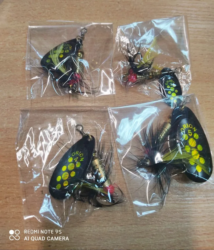 Вертушки соответствуют описанию.Заказывал вертушки 3-х меньших размеров,все 3 пришли вместе-в одной посылке через 3 недели.Все с опушкой скрывающей острый тройник,на лепестке наклейка с номером,наклеена хорошо,как будет держаться покажет купание.Товар и продавца рекомендую.
