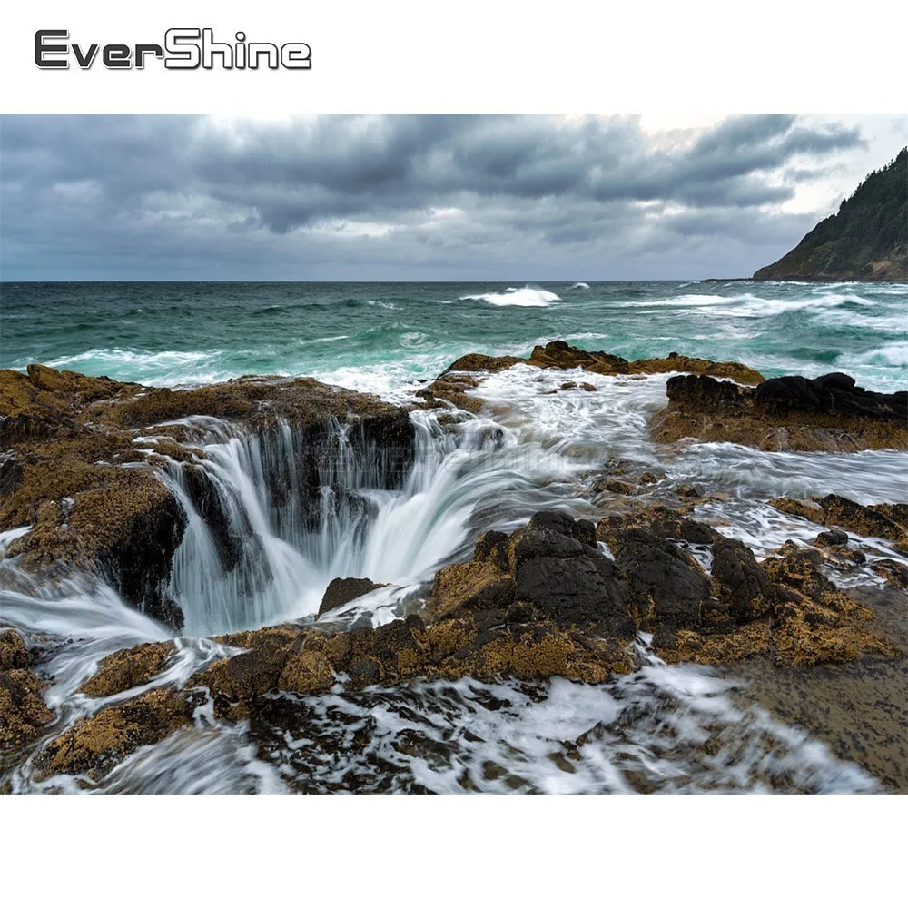 EverShine 5D Алмазная вышивка пейзаж, картина, выложенная алмазами с квадратные Стразы волна Вышивка крестом Алмазная мозаика море пейзаж