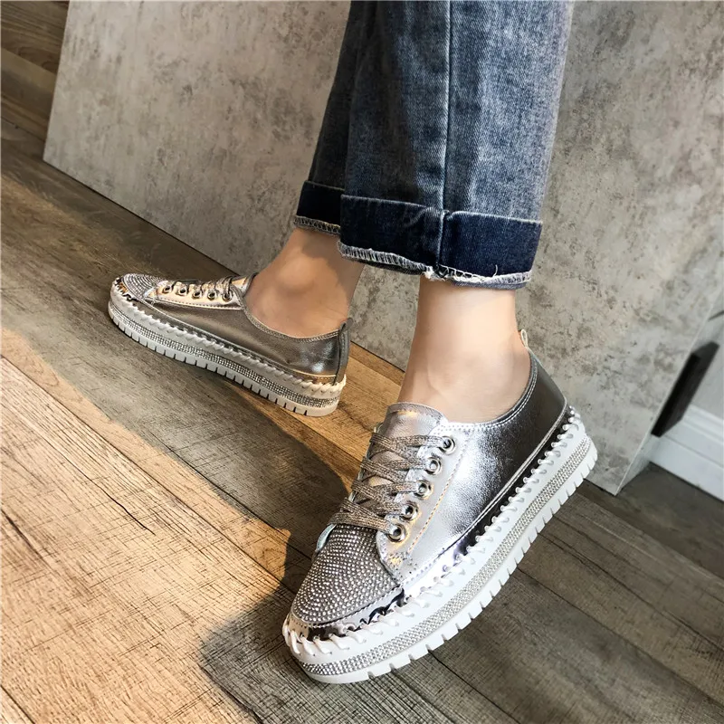 Кеды Lucyever женские со стразами, плоская подошва, на шнуровке, повседневная удобная обувь, круглый носок, на платформе, осень 2019