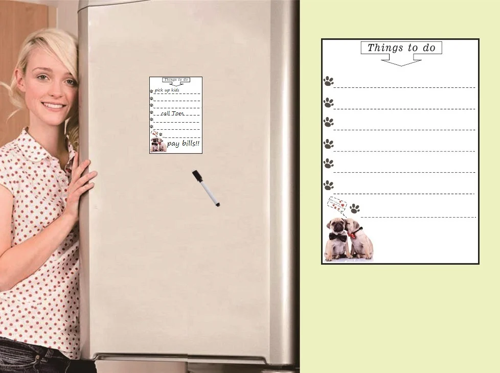 Белая магнитная доска для сухих салфеток, наклейка на холодильник, Еженедельный планировщик, милая собачка, кошка, доска для сообщений, блокнот для записей