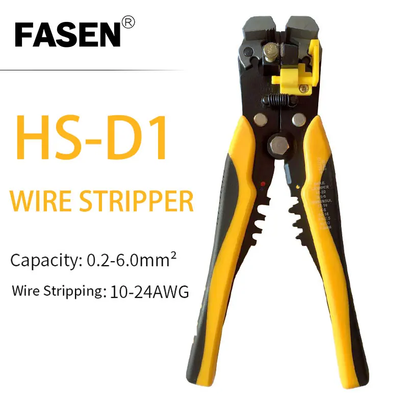 HS-D1 AWG 24-10 0,2-6.0mm2 инструмент для зачистки проводов многофункциональные автоматические плоскогубцы Зачистка обжимка проводов инструмент для резки Легко снимается без какой-либо регулировки Многофункциональный провода инструмент для снятия изоляции провода от AWG 24-10 (0,2 ~ 6.0mm ²) Для резки и полоскания провода и кабеля, для обжима изолированных и неизолированных клемм.