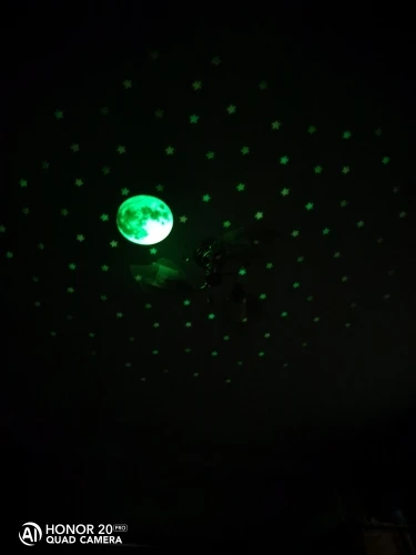 отличный магазин. отслеживал до последнего. не смотря на праздники доставка быстрая. заказывал луну на 20 см на фото лежит на блакноте который 35 см. конечно думал что будет из пластика но она сделана как обычная наклейка тока фосфорная но это даже лучше. на втором фото видно как светит. всем очень доволен спасибо продавцу и магазину. всех с новым годом))) и удачи))) позже когда пришлют звезды сделаю общее фото в готовом виде)))