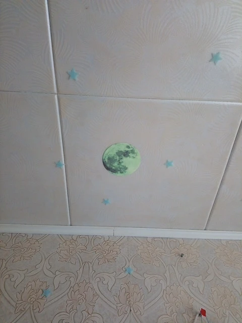 я не знаю у кого тут ни чего не светится. качество отличное! ярко светится всё. рекомендую. сегодня будем клеить. очень красиво. телефон плохо передаёт. луна ровная красивая чёткая. просто не распремилась до конца. упаковка тоже хорошая. доставка 2 недели