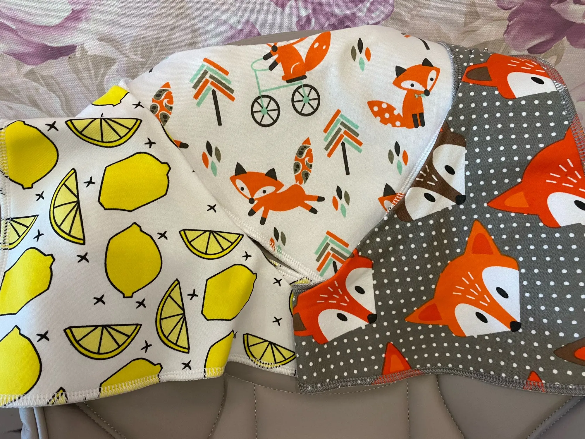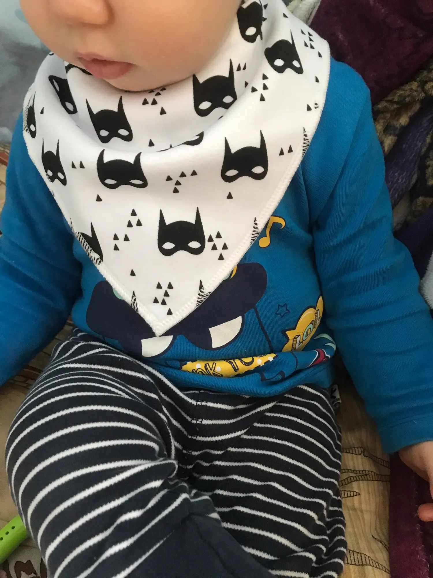 Прекрасные нагруднички, качество прекрасное. Хлопковые, рисунок не печать, не слезет от стирки. Обратная сторона - флис. Используем как шарфик, слюнявчик и играем, так как яркий! Рекомендую к покупке инста @annypoff, любые вопросы по покупкам с али