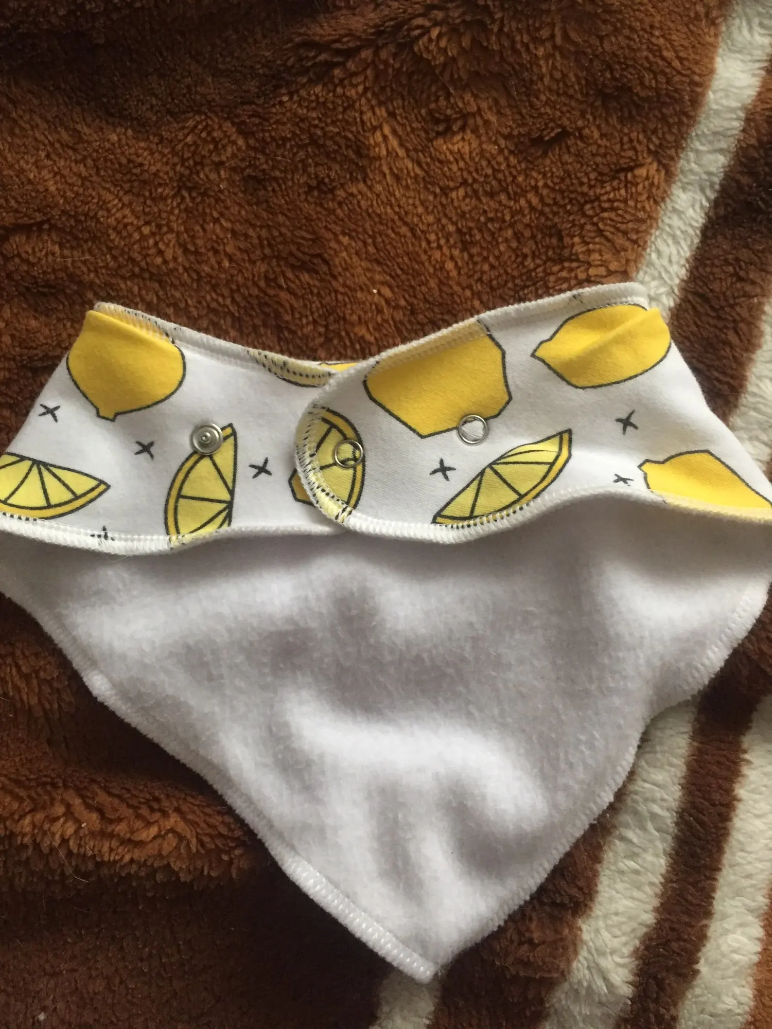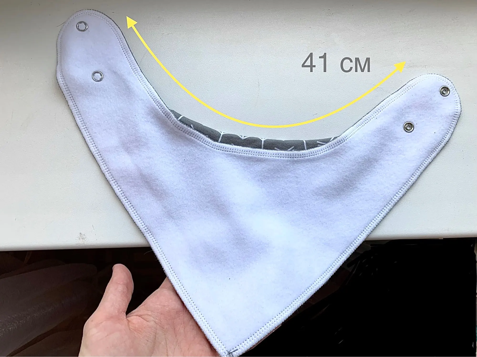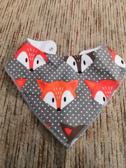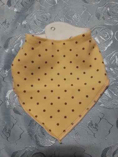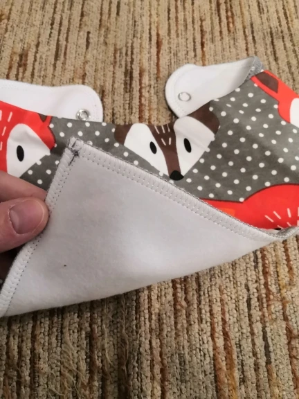 Суперский слюнявчик,выглядит даже лучше, чем на фото,более плотный ,флисовый. Заказ пришёл очень быстро,спасибо продавцу,обязательно закажу ещё несколько расцветок. Есть 2 кнопочки на разный размер. Швы прострочены качественно.
