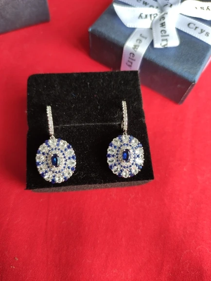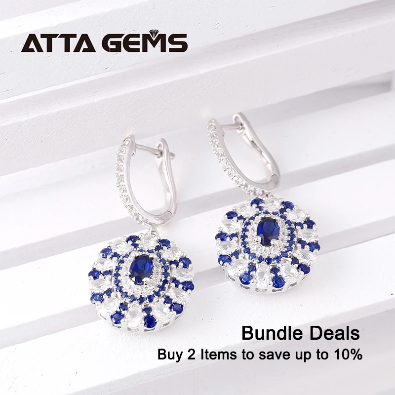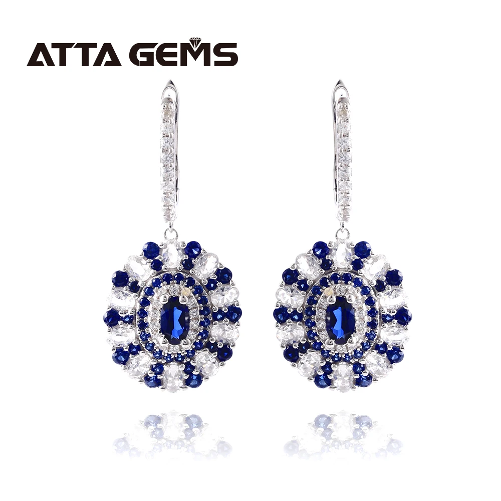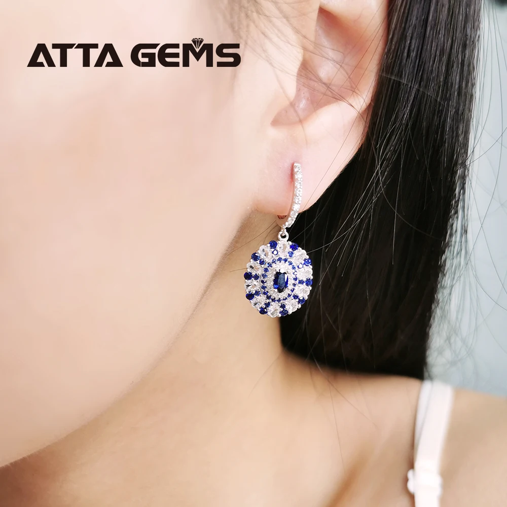 Женские классические серьги-подвески из серебра 925 пробы с синим сапфиром