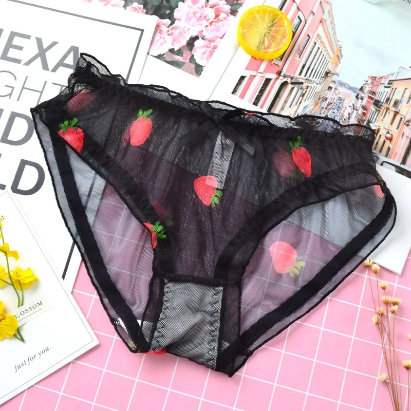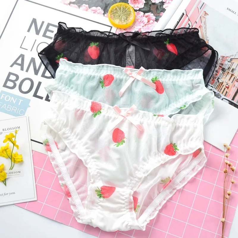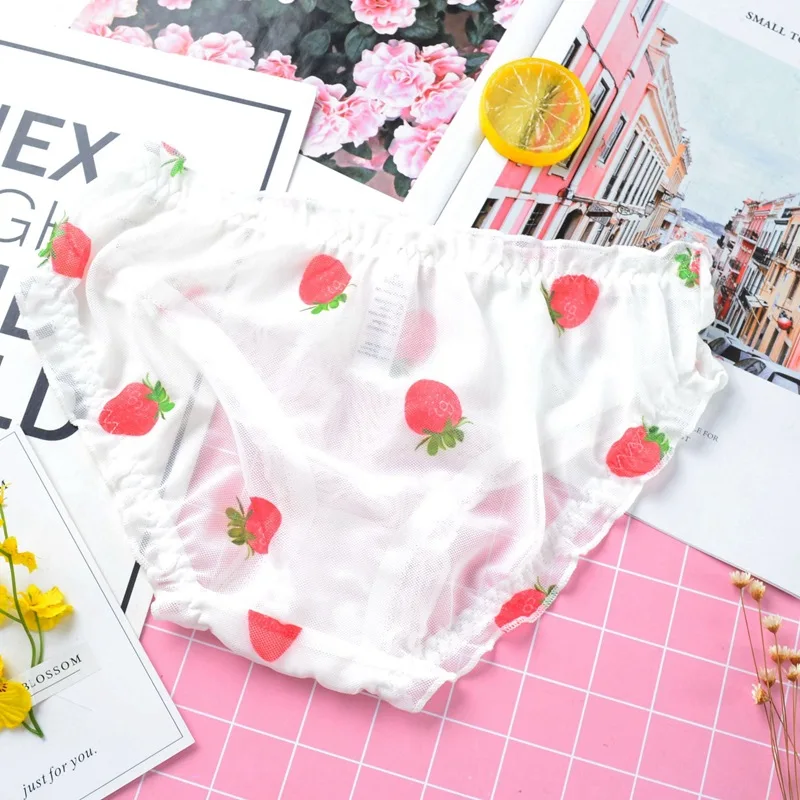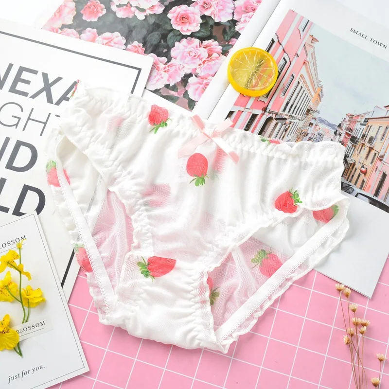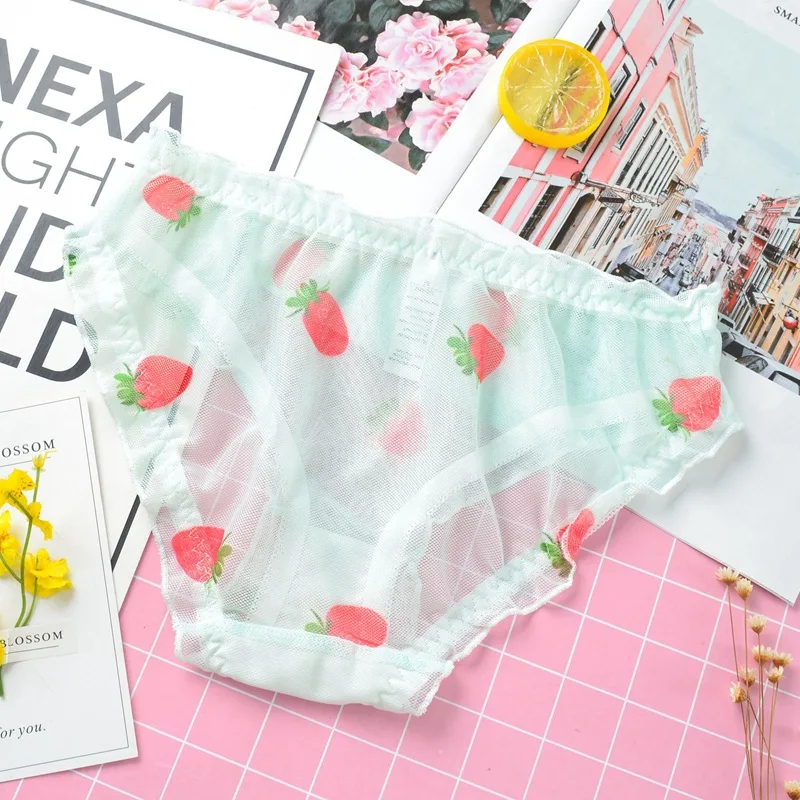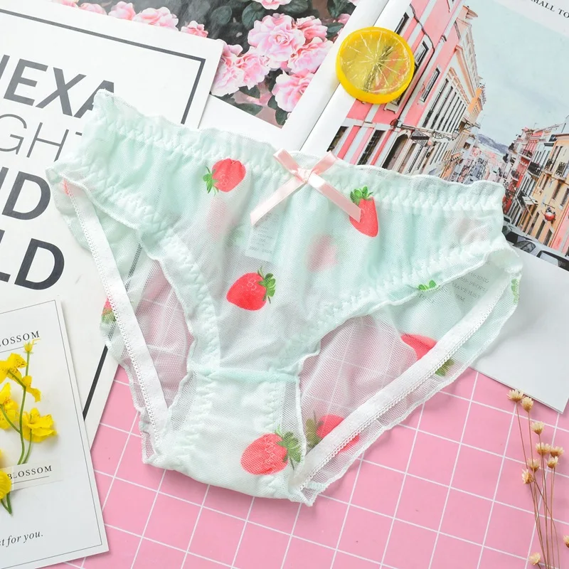 SP & CITY сексуальные трусики с мультяшным клубничным принтом, милое бесшовное нижнее белье с бантом, женское менструальное белье, мягкие прозрачные сетчатые трусы