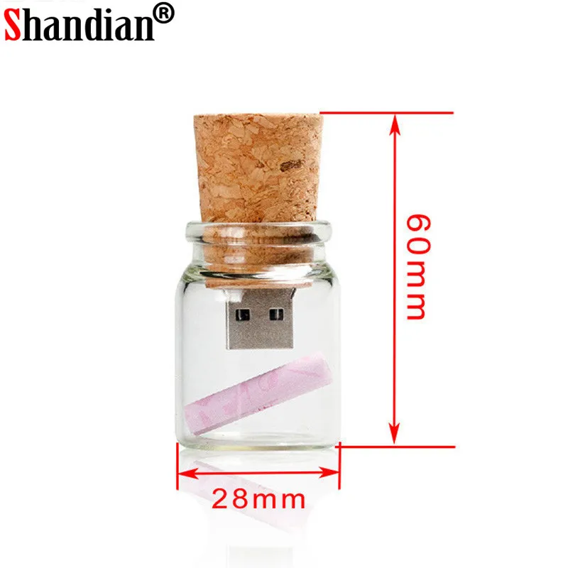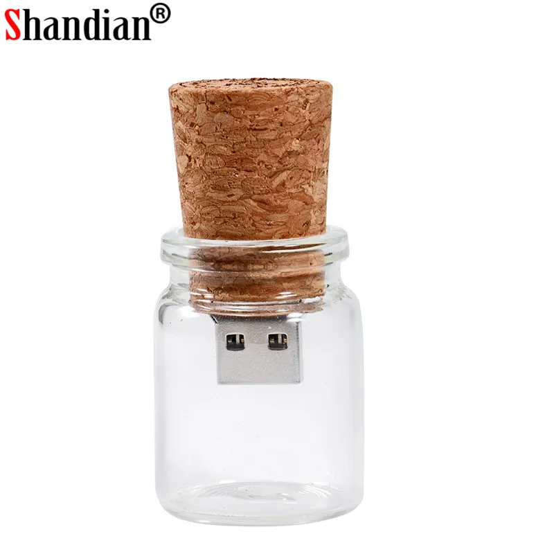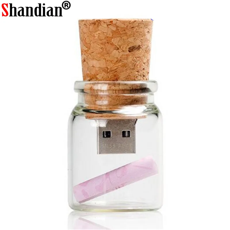 Стеклянная бутылка флеш-диск USB 2,0 дюйма, 4 ГБ, 8 ГБ, 16 ГБ, 32 ГБ, 64 ГБ, 128 ГБ, Бесплатная ручка с логотипом на заказ, флеш-накопители, свадебные подарки, фотография