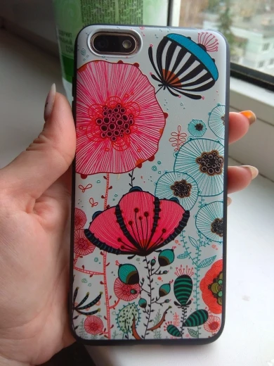 Заказ пришел за 9 дней до Питера. Чехол более жесткий и менее толстый, чем силиконовые, хорошо прилегает к телефону, все дырочки на месте. Картинка и рельеф не такие контрастные и насыщенные, как на фото. Рельеф рисунка небольшой, что тактильно приятно, и удобнее при использовании, т.к. не будет забиваться так сильно грязь у выступов. Вид презентабельный, покупкой довольна, рекомендую!