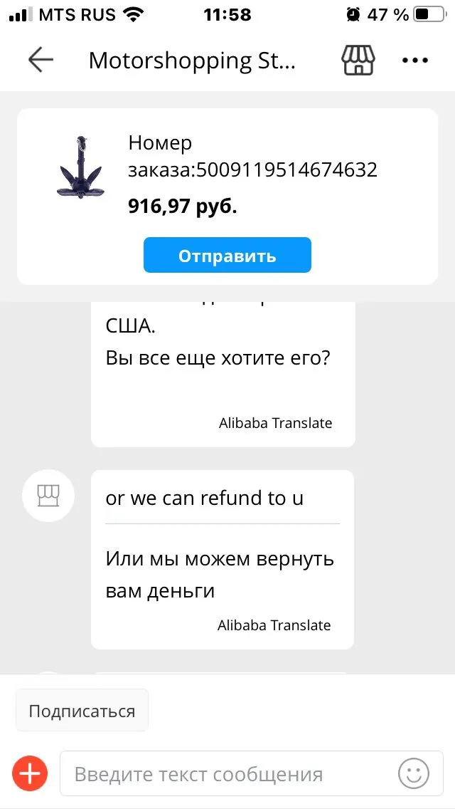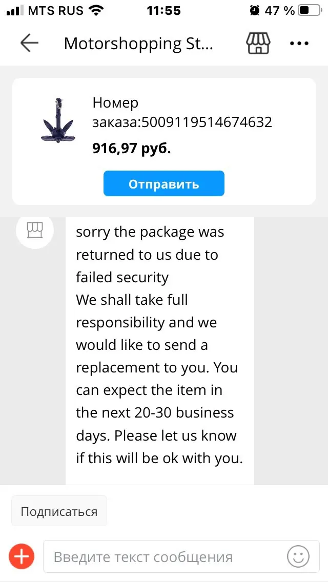 К сожалению мой заказ в пути следования был возвращён отправителю. Не дожидаясь окончания защиты заказа, написал продавцу и он согласился вернуть деньги. Открыл спор и деньги вернули в течении двух дней. Продавец честный, не стал уговаривать на ожидание до конца защиты. За это ставлю 5 звёзд.