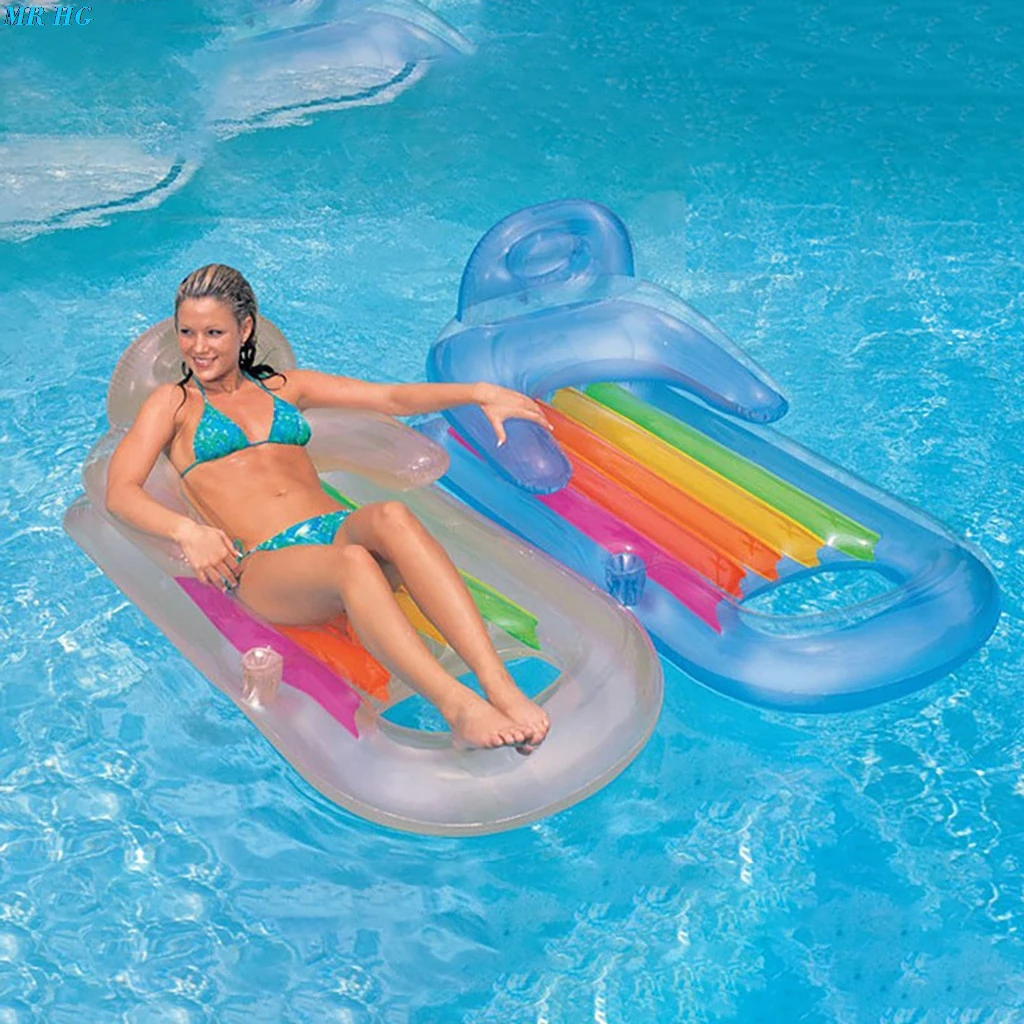 Надувная плавающая кровать для летнего отдыха, для бассейна, шезлонгов, с подлокотником, подстаканником