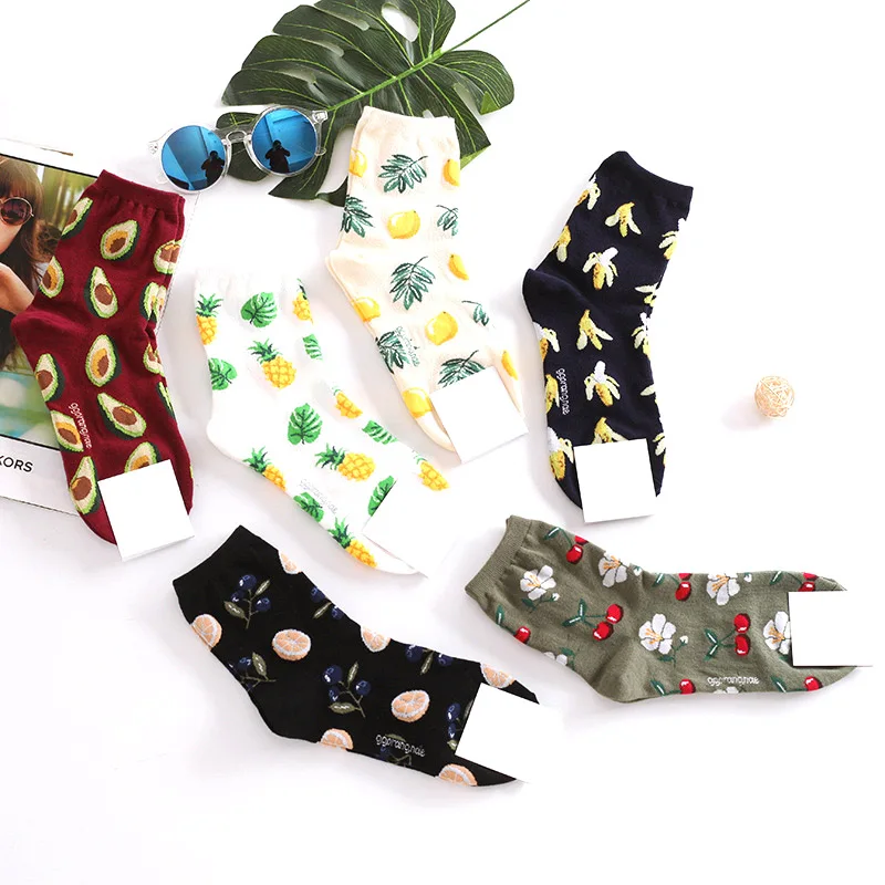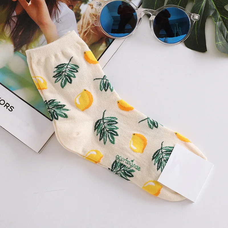 Авокадо, корейский стиль, свежий, лимонный цвет, черника, банан, счастливые милые женские носки из хлопка