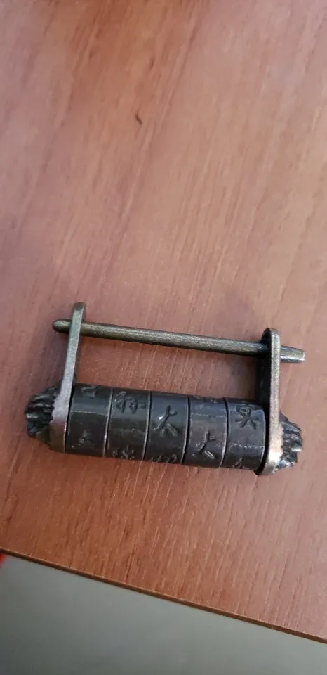 Нашла видео у другого продавца, как открывать. На мешочке, в котором лежит замок, приклеена бумажка с иероглифами. Это пароль. Эти иероглифы нужно на замочке выставить в том же порядке (да, на замочке они нарисованы другим шрифтом, придётся покумекать, кто есть кто). Причём выставлять их надо в самом нелогичном месте: поверните замок к себе перекладинкой (или перемычкой? - в общем, палочкой, которая запирает замок) и вот под этой перекладинкой выставляйте, именно там, где перекладинка будет загораживать всё. Получится не сразу, но вы справитесь.
