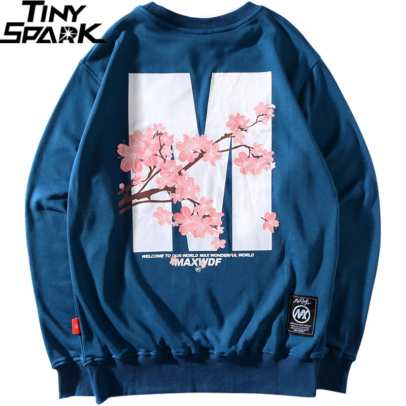 Толстовка с капюшоном в стиле Харадзюку, толстовка в стиле хип-хоп с японской Сакурой, свободный осенний свитер