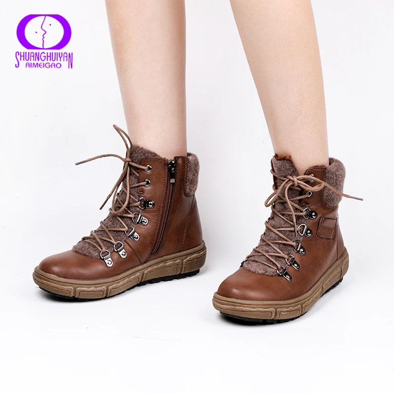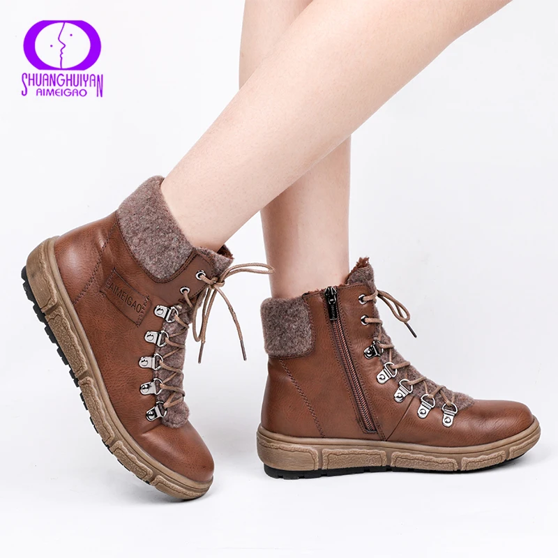 Женские кожаные ботинки AIMEIGAO, черные водонепроницаемые ботильоны на плоской резиновой подошве, с флисовой подкладкой, на молнии, зима 2019 icon star icon star icon star icon star icon star