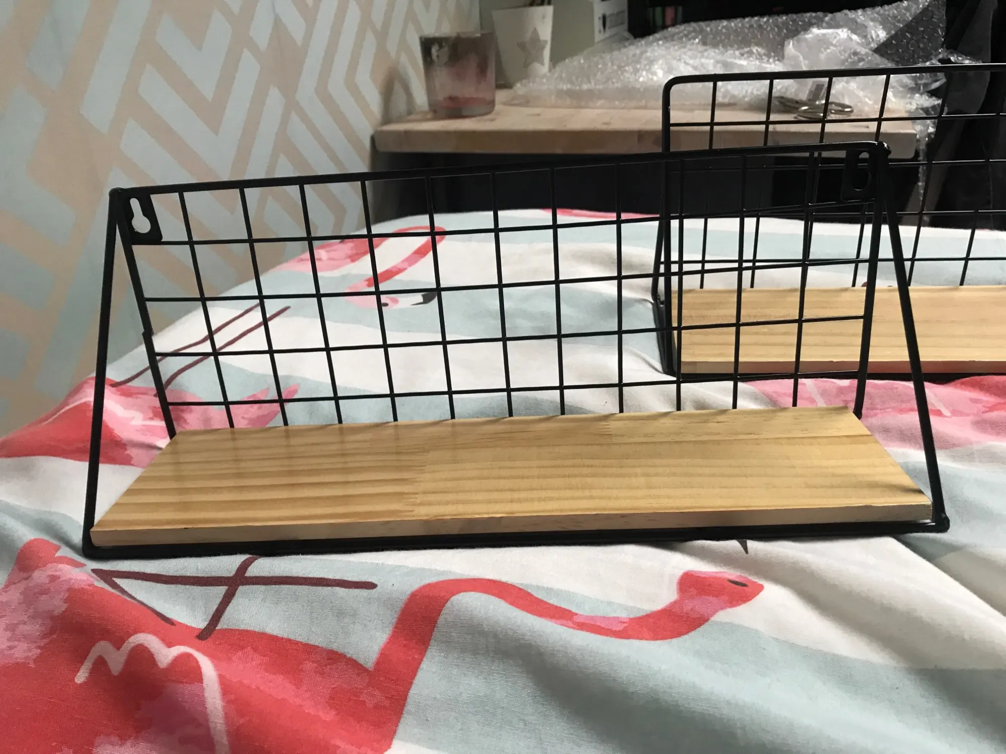 Очень хорошее качество и хорошо поддерживает вес, но только небольшая проблема в том, что на моем полке есть отверстия на деревянной доске, как если бы она была распознана. Но в остальном очень хорошего качества!