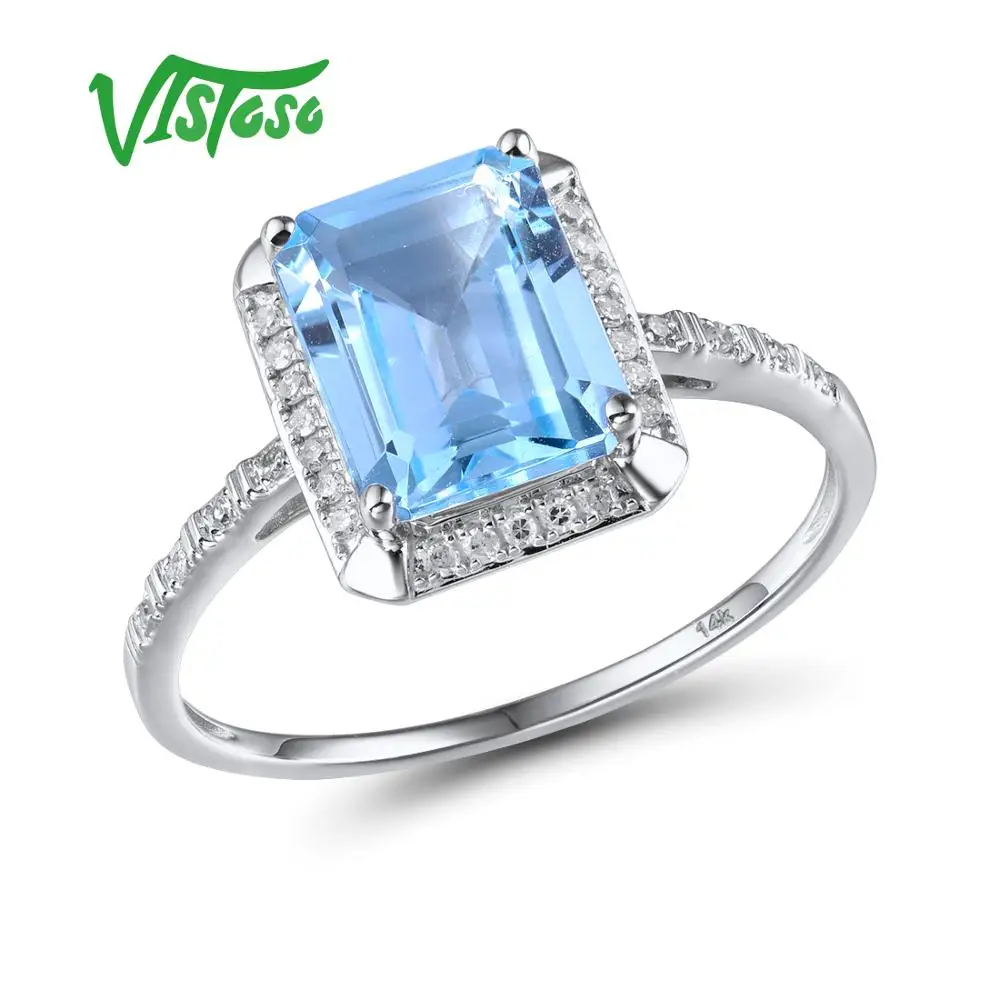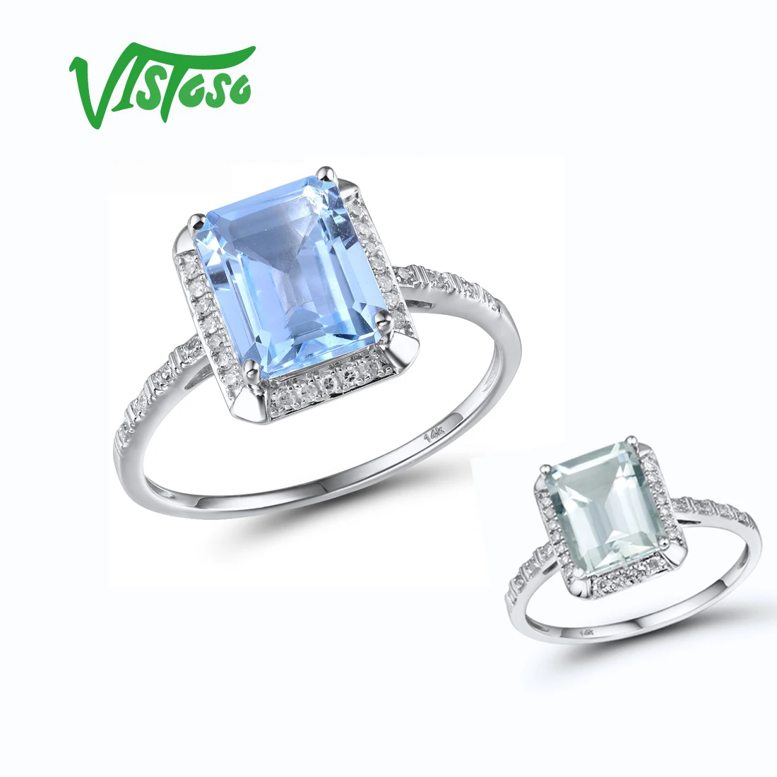 VISTOSO 14 K 585 кольца из белого золота для женщин Блестящий Алмаз лимпид Небесно-Голубой ТопазЗеленый Аметист юбилей классические ювелирные изделия