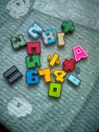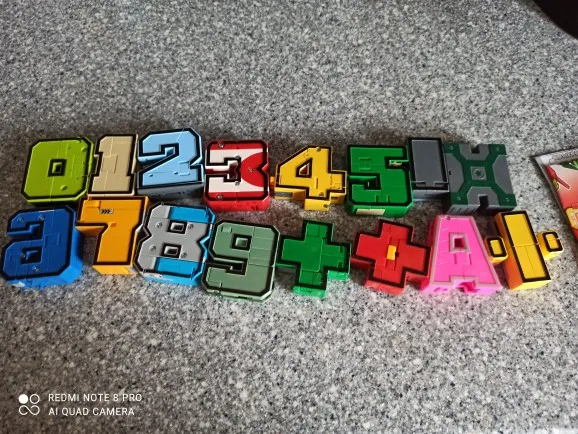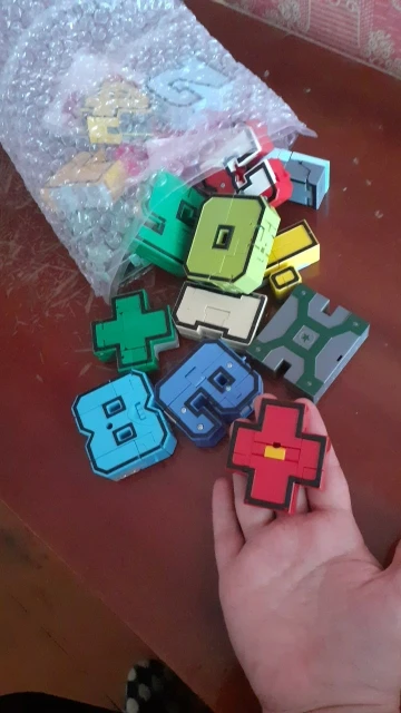 В общем цифры хорошие,размер думала будет побольше,но и такой не плохо,по отдельности фигурки разбираются хорошо,но для сборки робота не подходят, соединения хлипкие и робот не держится.