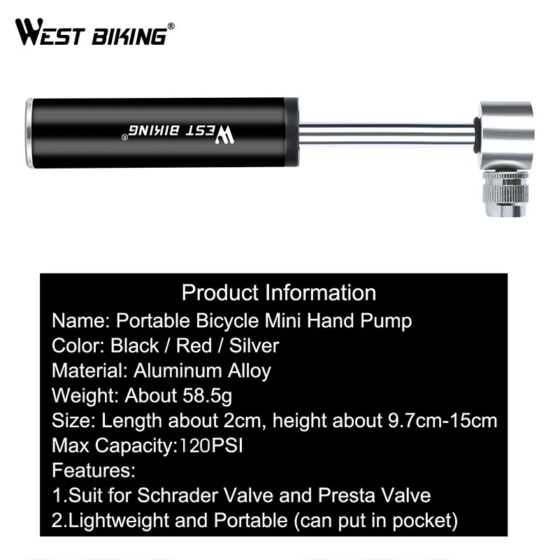 Насос для велосипедных шин, WEST BIKING, портативный, из алюминиевого сплава