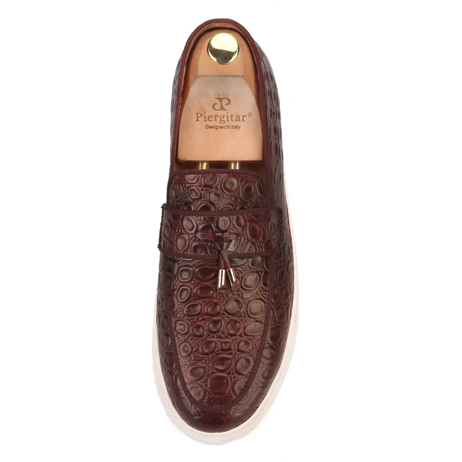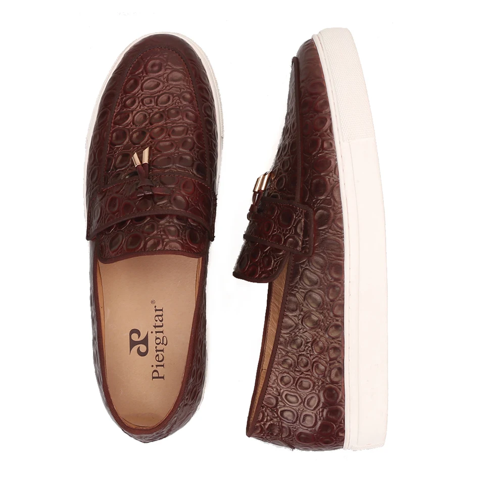Мужские кроссовки Piergitar из натуральной кожи коричневого цвета с кисточками ручной работы в спортивном стиле мужская повседневная обувь с белой подошвой 2019