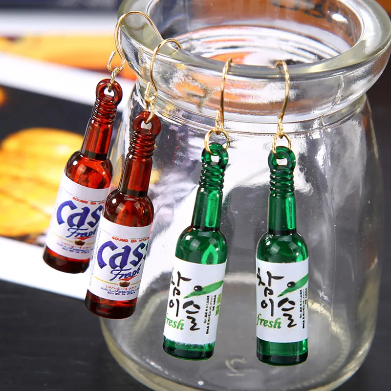 Женские Висячие серьги в виде пивной бутылки, из смолы, эффектные ювелирные украшения, 2018