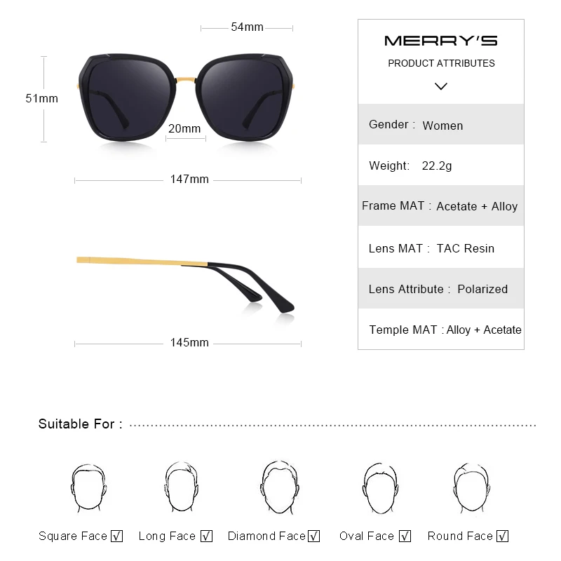 MERRYS дизайнерские женские модные квадратные поляризованные солнце...