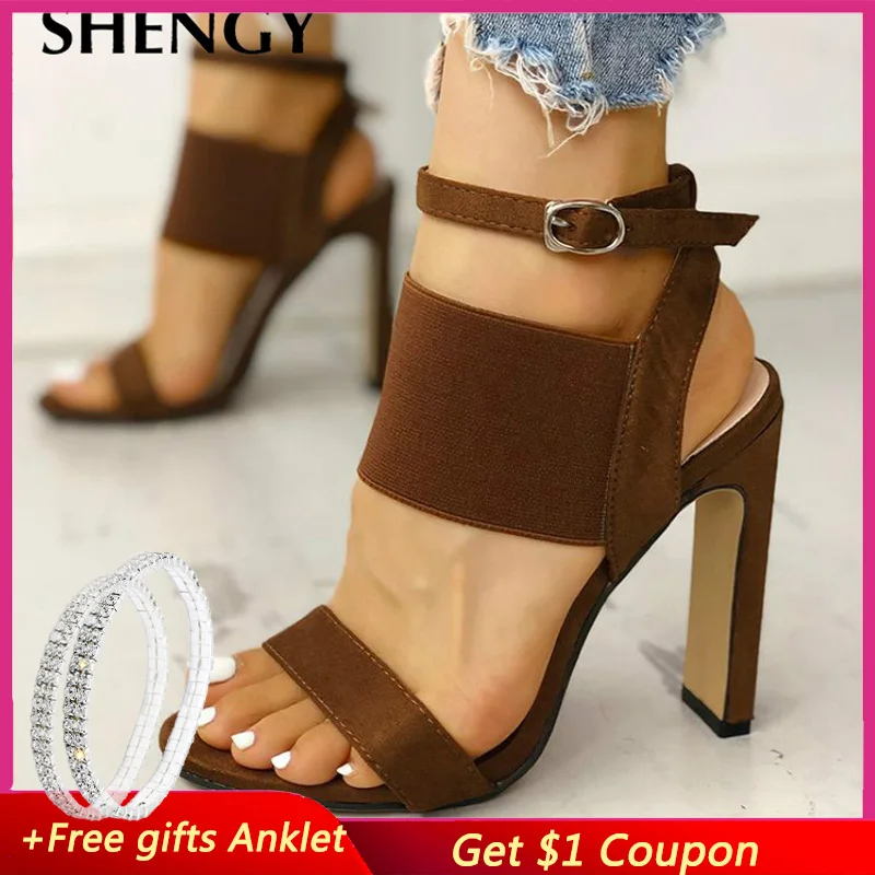 Новые женские летние сандалии в гладиаторском стиле на каблуке 9 см женские с открытым носком на высоком каблуке босоножки на высоком каблуке, украшенные камнями; Ремешок на щиколотке женские вечерние, свадебные туфли