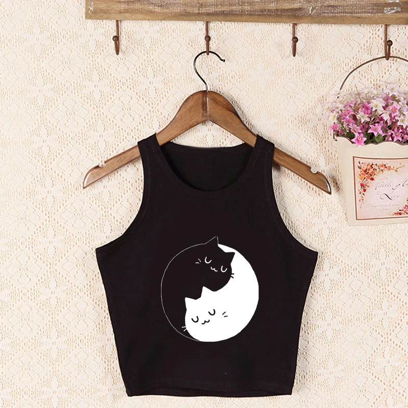 Женские топы с рисунком Taiji Cat, летние топы в стиле Харадзюку, Модные свободные укороченные топы для девочек, уличная одежда
