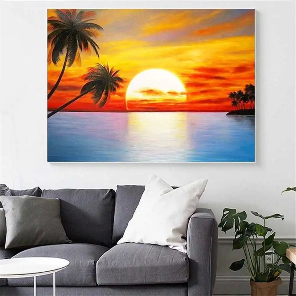 Name:AZQSD Diamond Embroidery Sunset Diamond Painting Scenery Diamond Mosaic Full Display Home Decor Full Drill Cross Stitch Kit