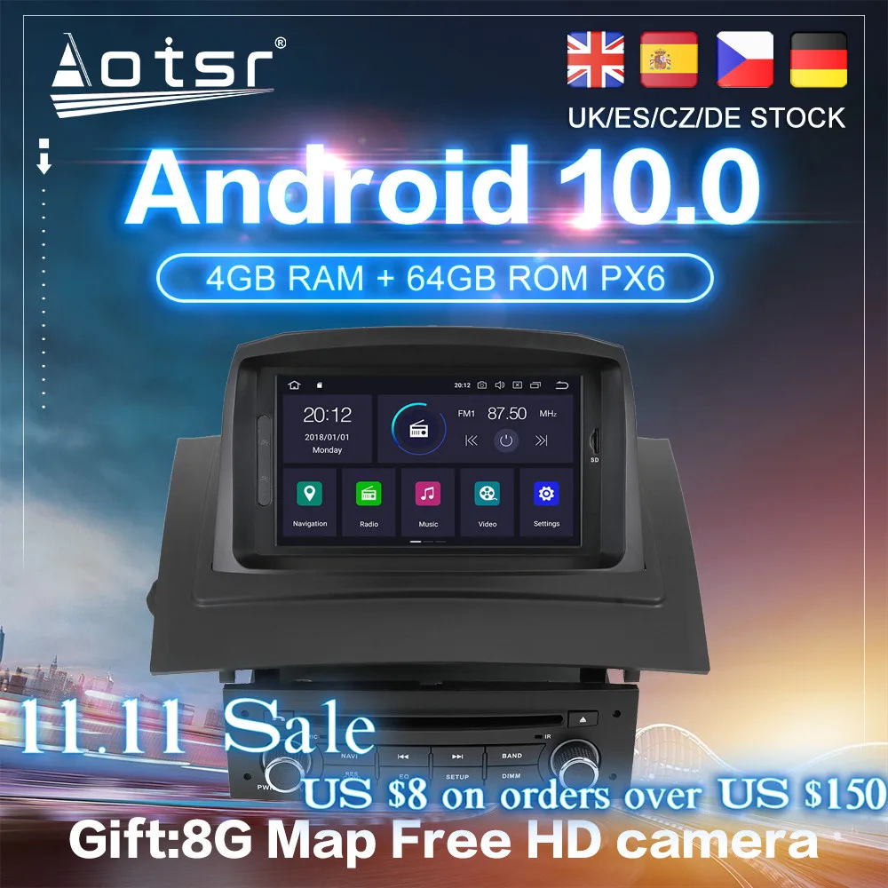 Android 10 4 + 64G PX6 IPS Carplay для Renault Megane 2 Fluence 200...