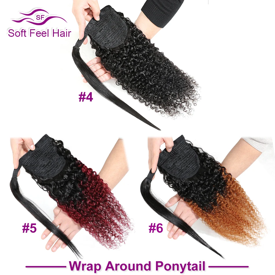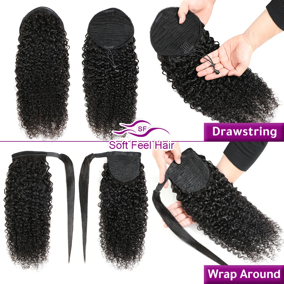 Мягкие волосы на ощупь, кудрявые, кудрявые, хвост, человеческие волосы для женщин, Remy Clip Ins, бразильские, обернутые вокруг и шнурок, конский хвост для наращивания