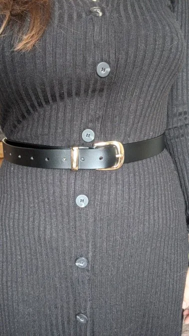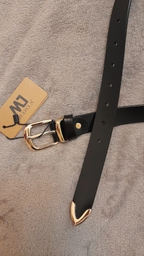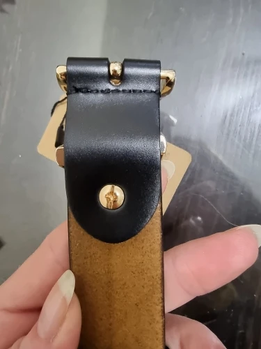 Ремень пришел за 2 недели в магазин Пятёрочка. Сверху ПУ, а внутри прессованная кожа. Очень хорошее качество. Брала самый длинный , чтобы делать хвостик, но ремень для этого жестковат. Форнитура приятного жёлтого цвета , ровная и без царапин. Я довольна качеством. Продавца советую.