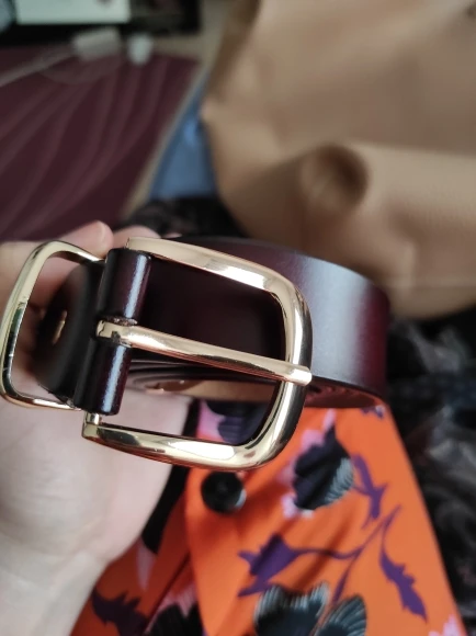 Ремень - восторг! Абсолютное соответствие описанию, в жизни даже лучше, чем на фото! Пахнет кожей и по всему видно, что действительно кожа, фурнитура смотрится дорого, шикарный коньячный оттенок подойдёт ко всему. Очень удобно, что ремень можно самостоятельно подогнать по нужной длине. В общем, ремень смотрится очень достойно и дорого! Рекомендую! Спасибо продавцу за быструю доставку - всего 16 дней.