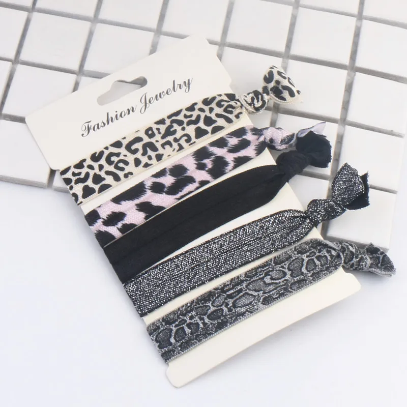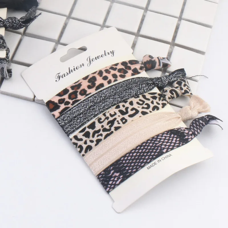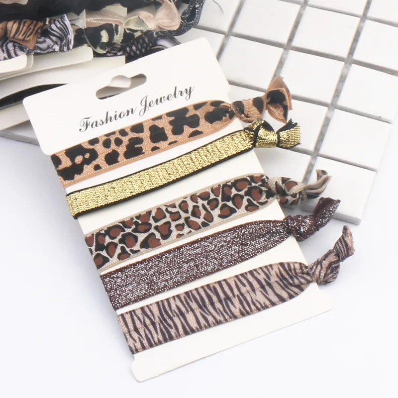 Резинки для волос женскиеженские, 5 шт.компл., эластичные, с леопардовым принтом