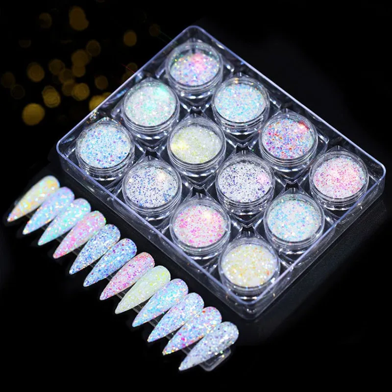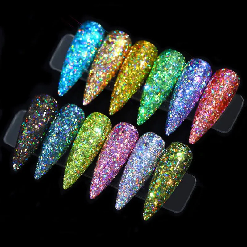 Новинка 2019 года, блестящий порошок для ногтей, 12 коробок, голографическая фосфорная пудра для ногтевого дизайна, пыль русалки, блестки, украшение для ногтей сделай сам для лица и тела HY05