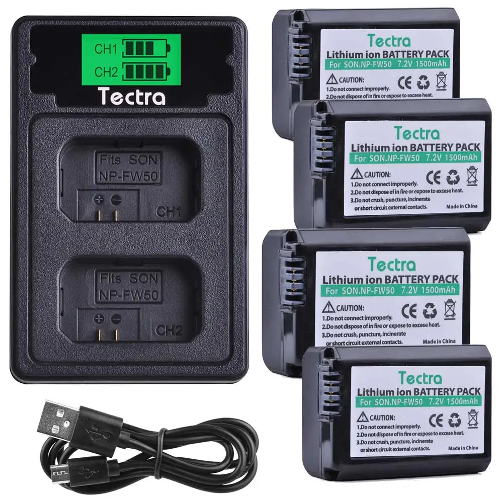 Аккумулятор NP-FW50 NP FW50 для Sony Alpha a6500, a6300, a6000, a5000, a3000, NEX-3, a7R, с ЖК-дисплеем, USB Type-C, двойное зарядное устройство, 4 шт.