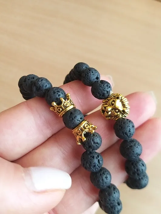 Браслет мужской, с подвесками в виде головы льва и короны, 8 мм, 2 шт.компл., из натурального лавового камня, 2020