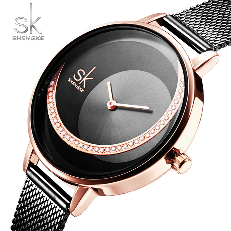 Часы Shengke женские со стразами, роскошные брендовые модные креативные наручные часы SK для женщин