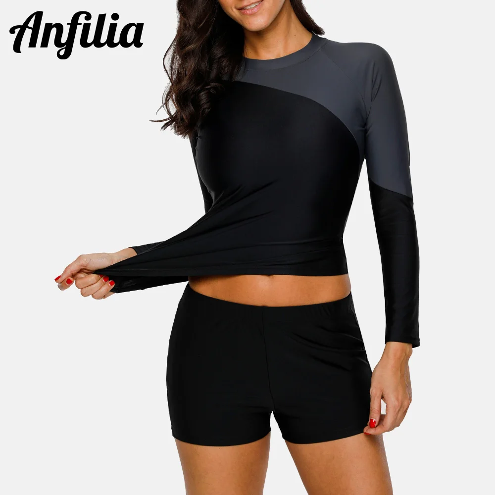 Купальник Anfilia женский с длинным рукавом, топ для плавания, Рашг...