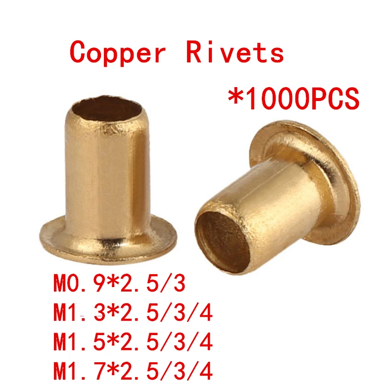 1000 шт. медная полая заклепка набор M0.9,M1.3,M1.5,M1.7 * 2,534 мм...