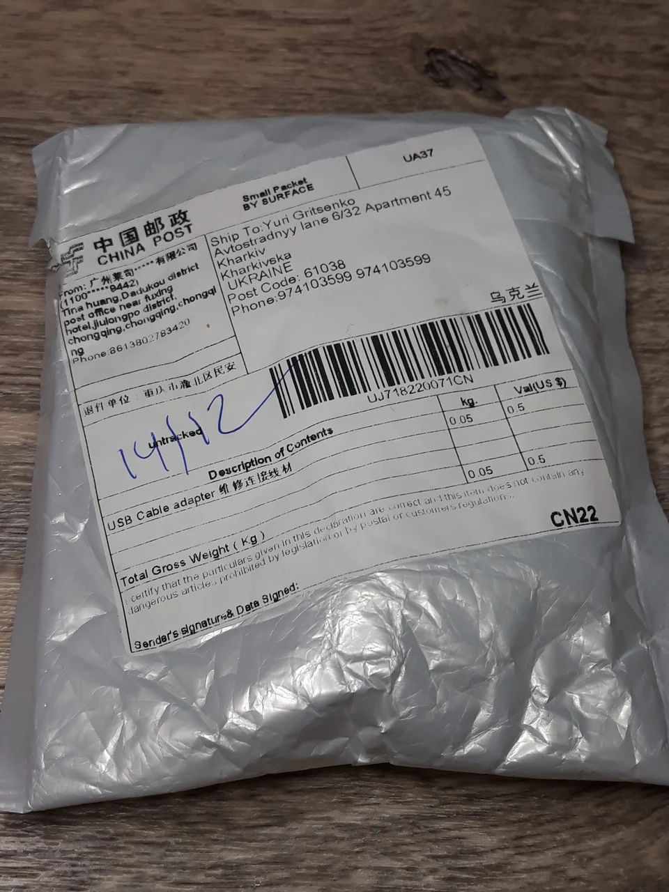 Страна: UA Color: 1pcs Доставка: Saver Shipping 03.10.2020