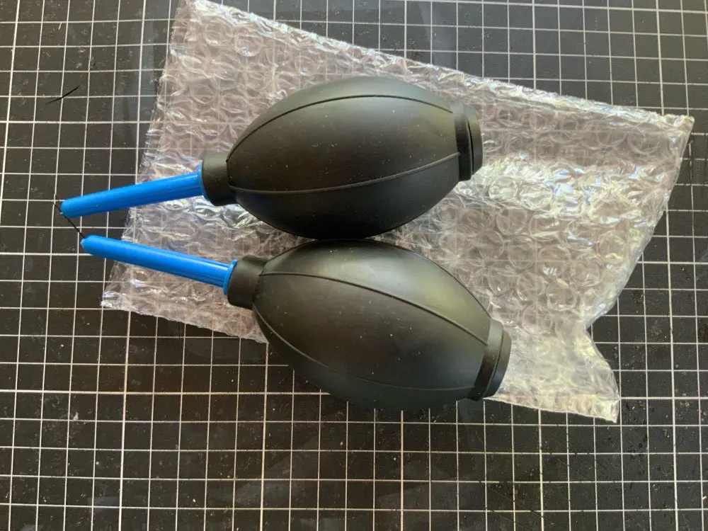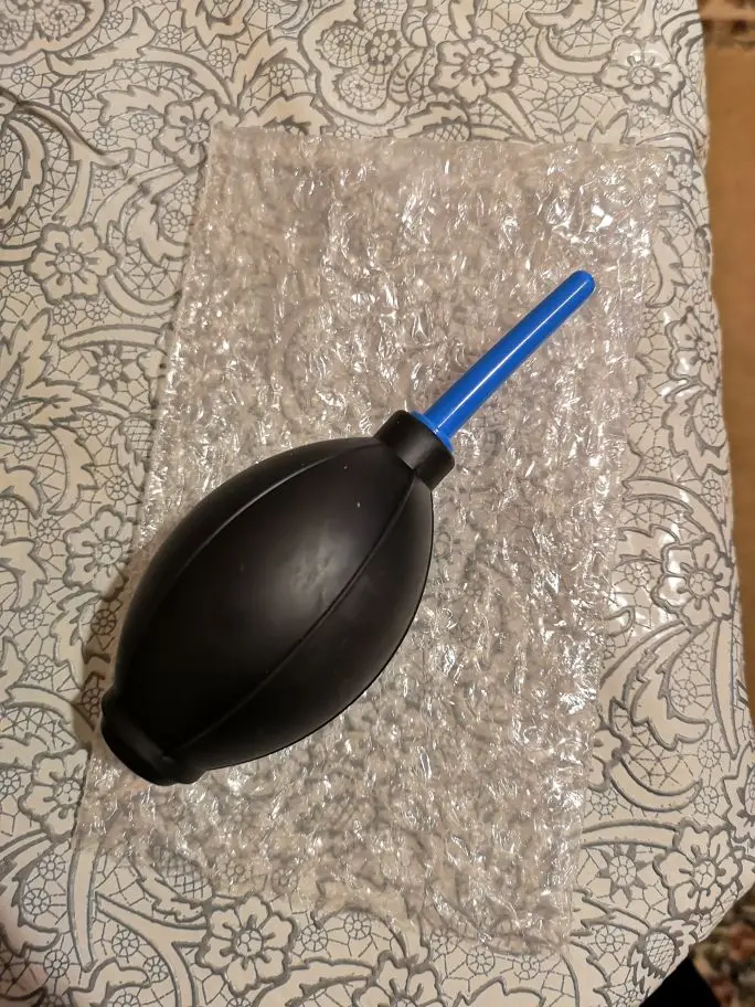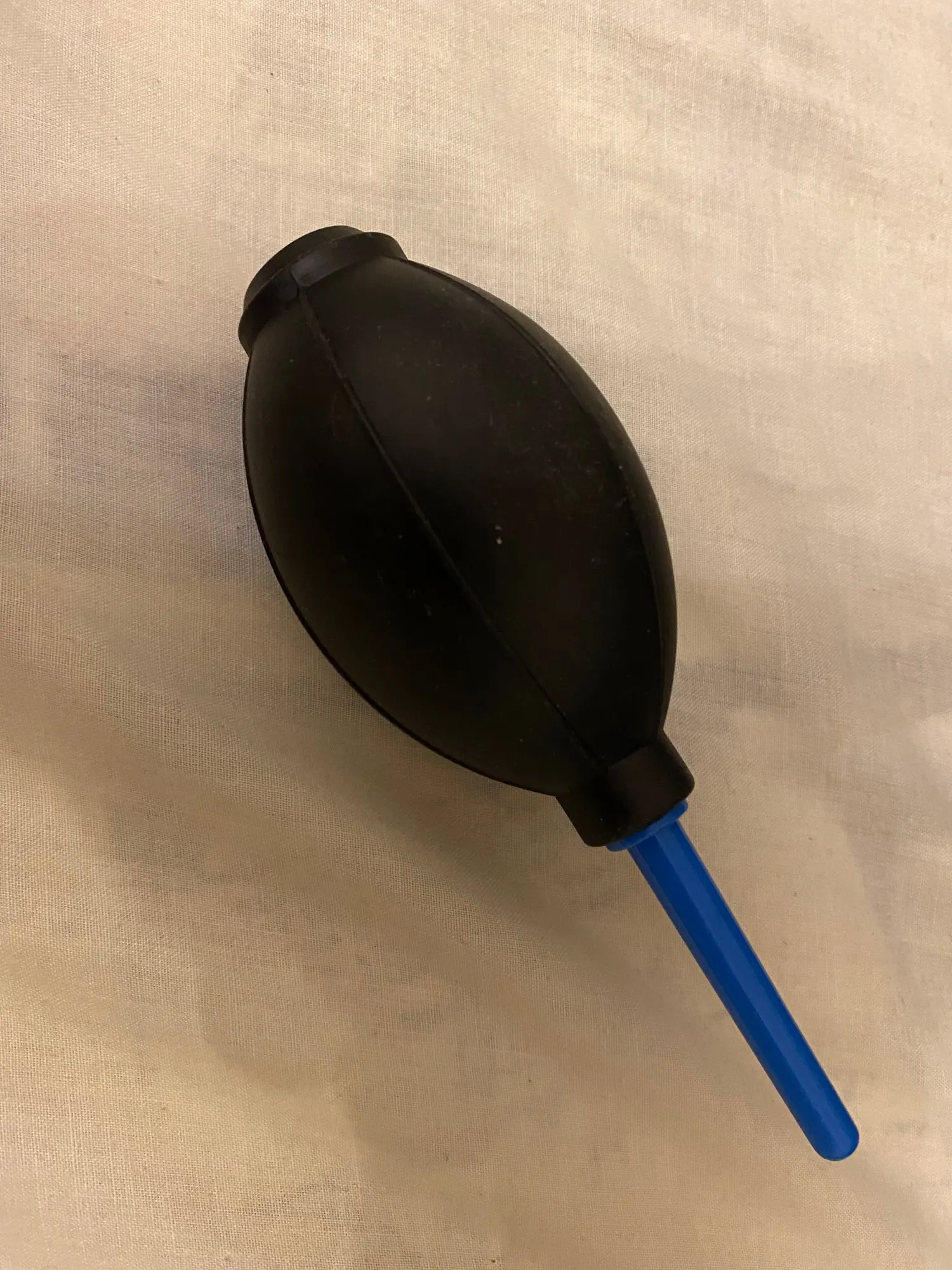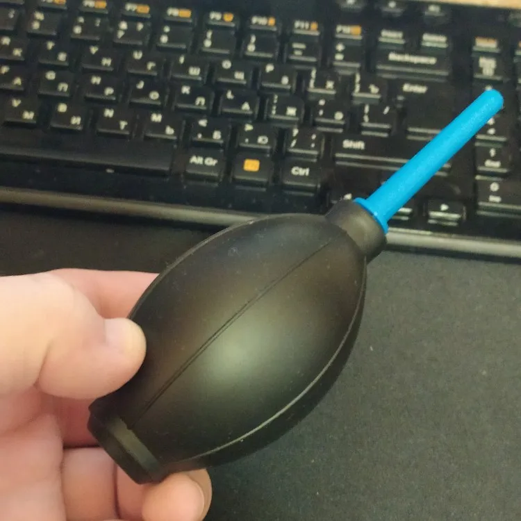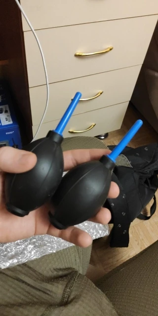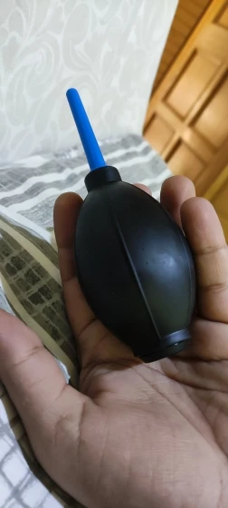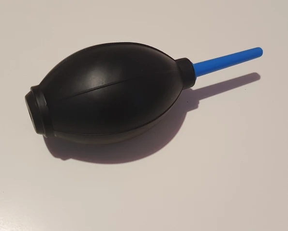 Этот маленький воздуходувка должен быть для каждого фотографа. Мягко удаляет мелкие частицы пыли. Это базовый резиновый воздушный бак и острый наконечник, ничего необычного, но действительно полезного. Работает отлично. Из-за длительной доставки, Воздушный бак был немного деформирован, но все еще работает нормально. Ткань, которую я также заказал, сомневается, что это dearskin... Но он хорошо работает, легко удаляет грязь с линз. Доставка была действительно долгой...