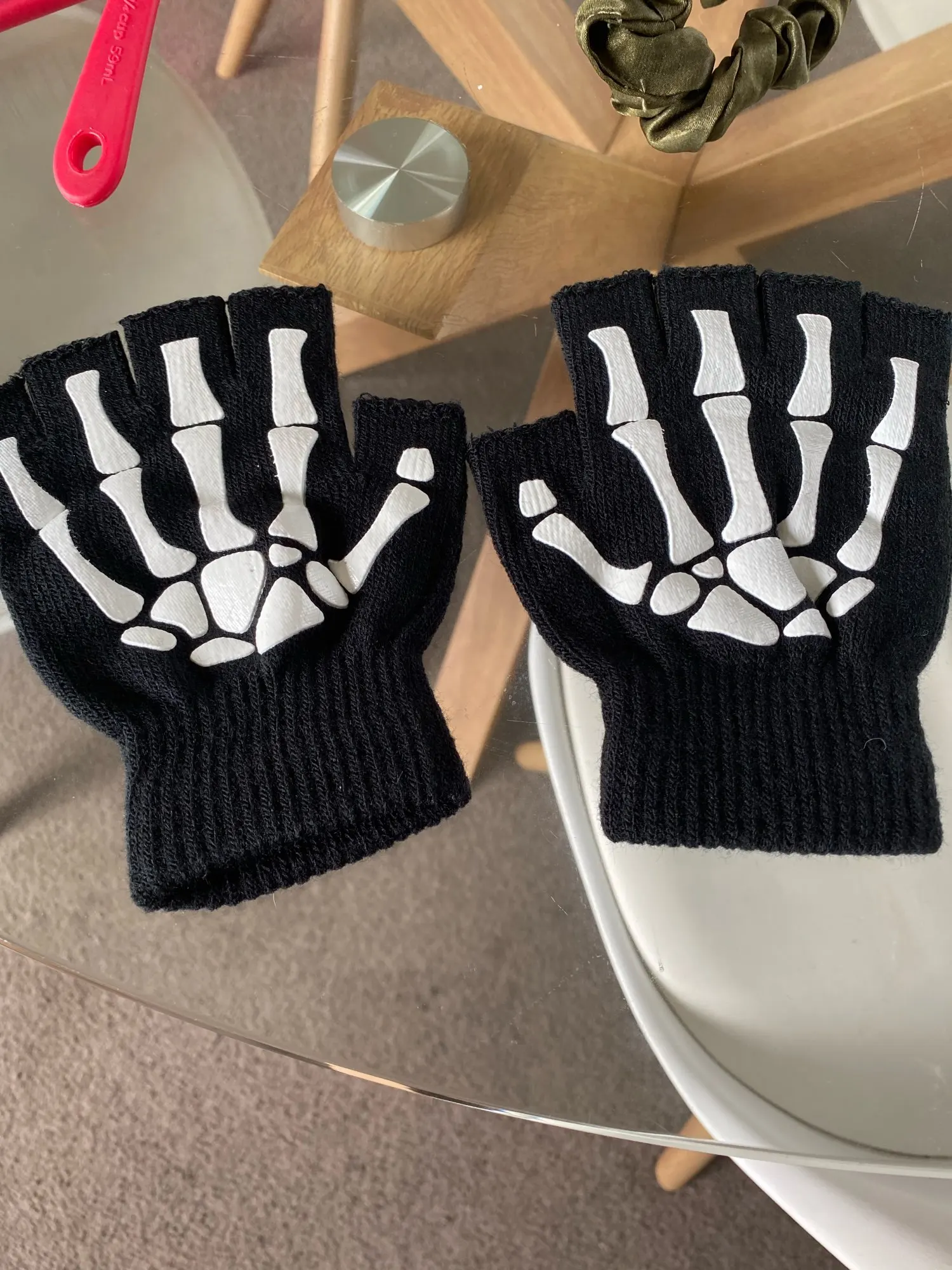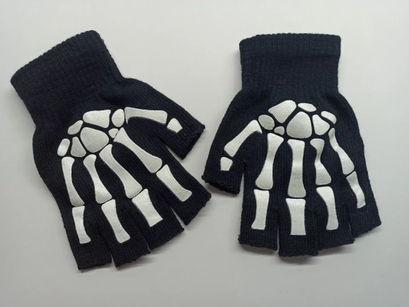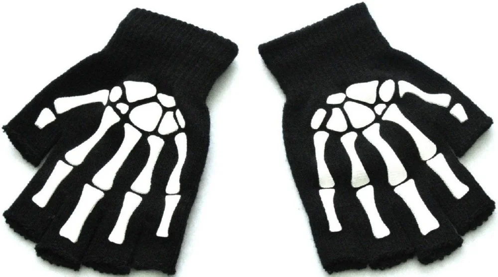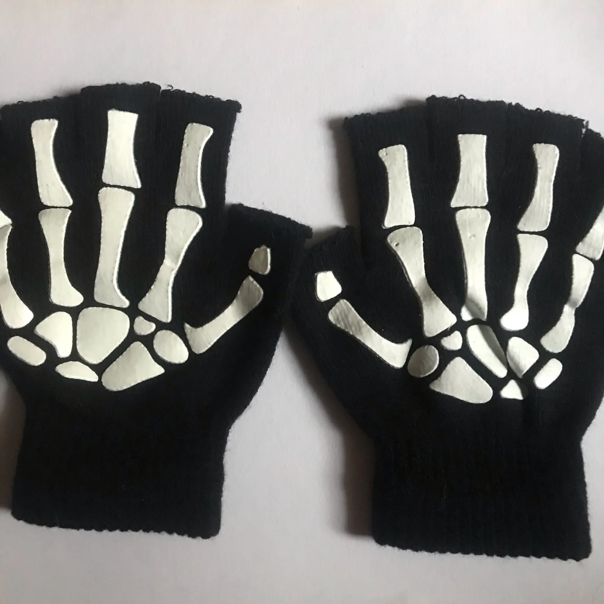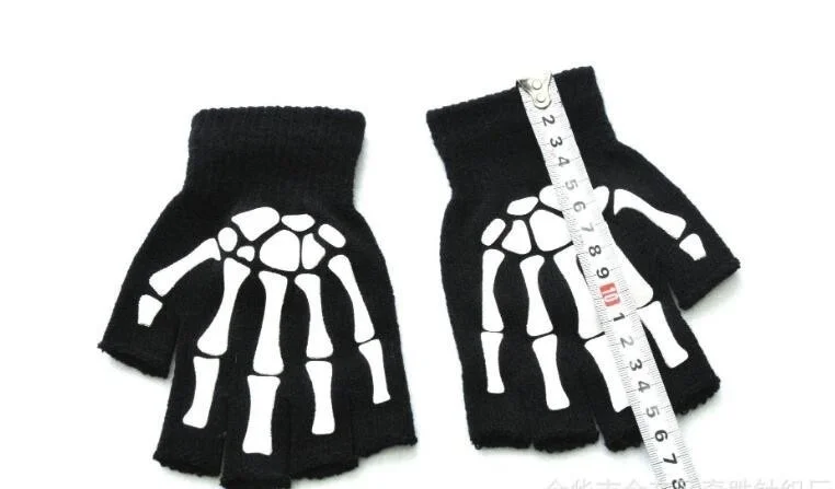Перчатки вязаные без пальцев, для взрослых, с принтом скелета, Нескользящие